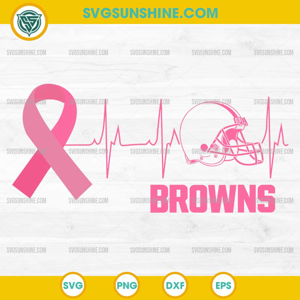Cleveland Browns Breast Cancer Awareness SVG – Pink Ribbon Heartbeat Browns Football SVG