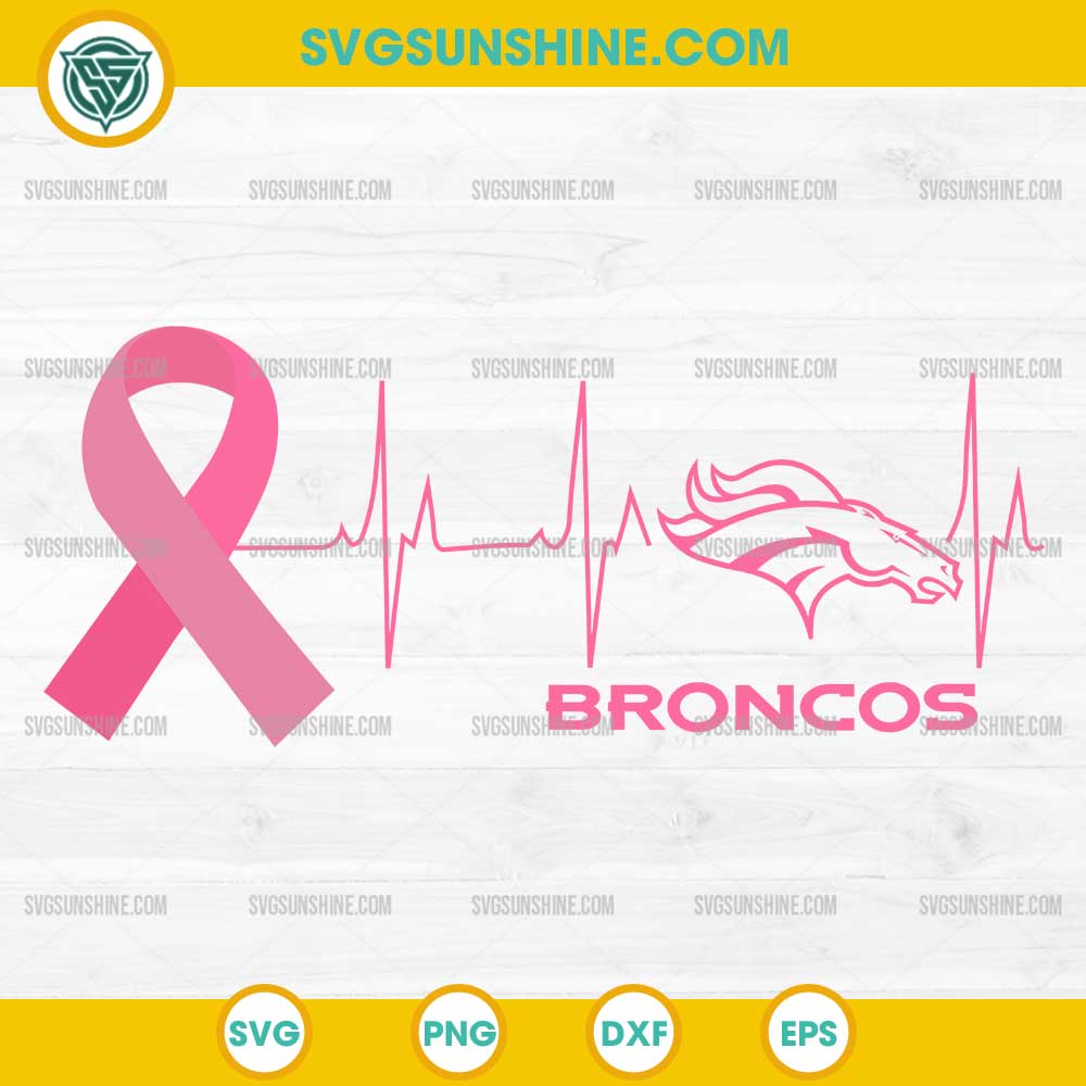 Denver Broncos Breast Cancer Awareness SVG – Pink Ribbon Heartbeat Broncos Football SVG