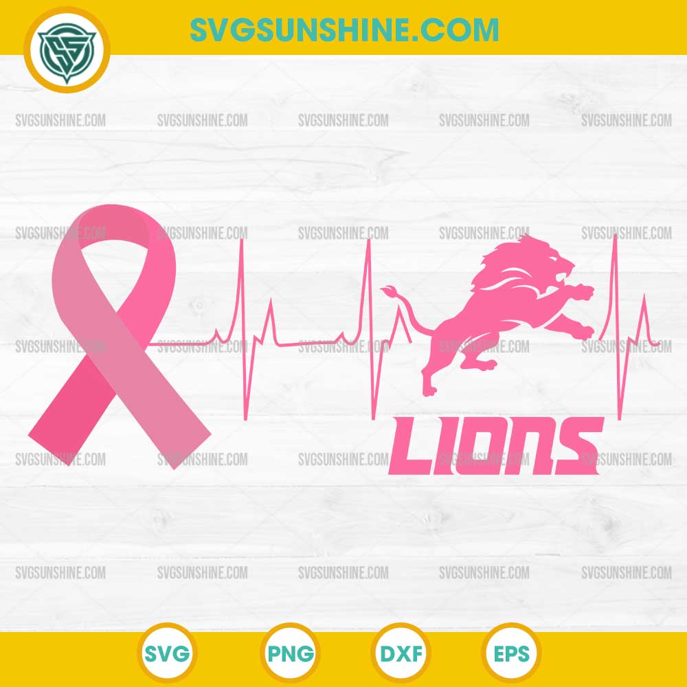 Detroit Lions Breast Cancer Awareness SVG – Pink Ribbon Heartbeat Lions Football SVG