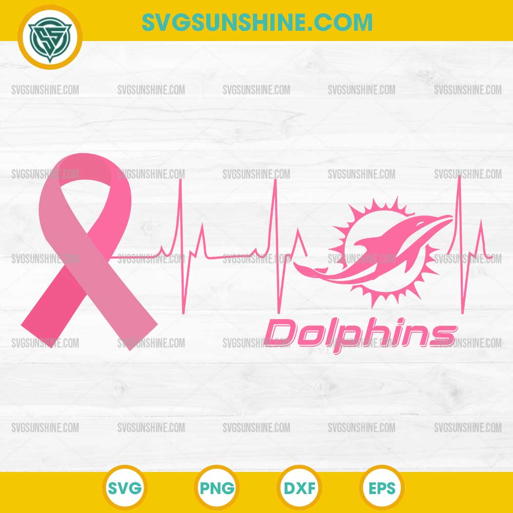 Miami Dolphins Breast Cancer Awareness SVG – Pink Ribbon Heartbeat Dolphins Football SVG