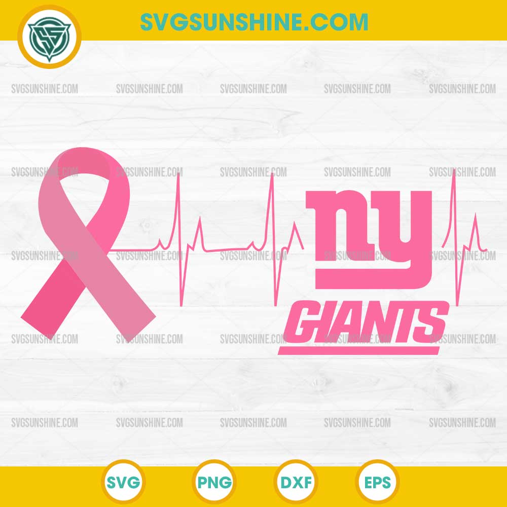 New York Giants Breast Cancer Awareness SVG – Pink Ribbon Heartbeat Giants Football SVG