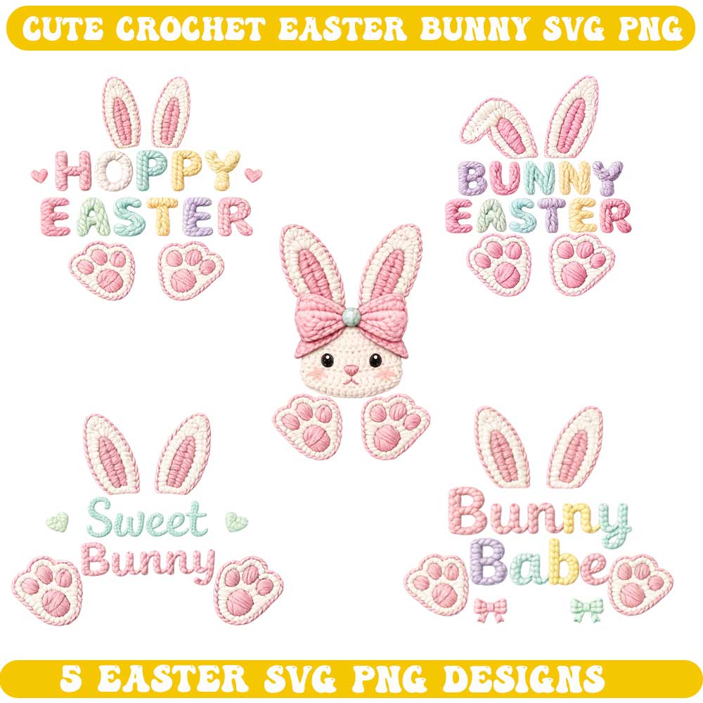 Crochet Bunny Ears SVG PNG Bundle – Easter Paws Designs