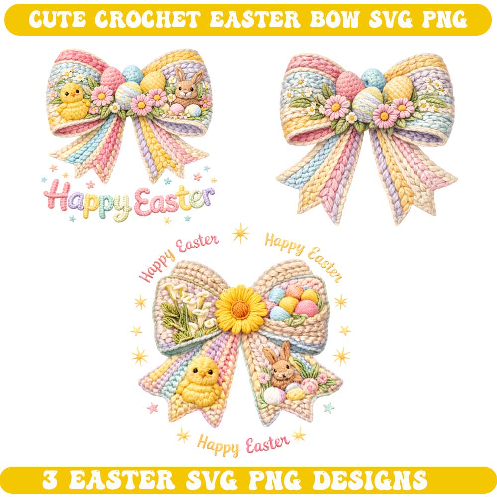 3 Cute Crochet Easter Bow SVG PNG – Knitted Ribbon Designs