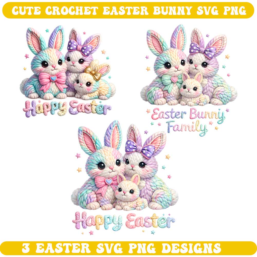 3 Cute Crochet Easter Bunny Family SVG – Amigurumi PNG Bundle
