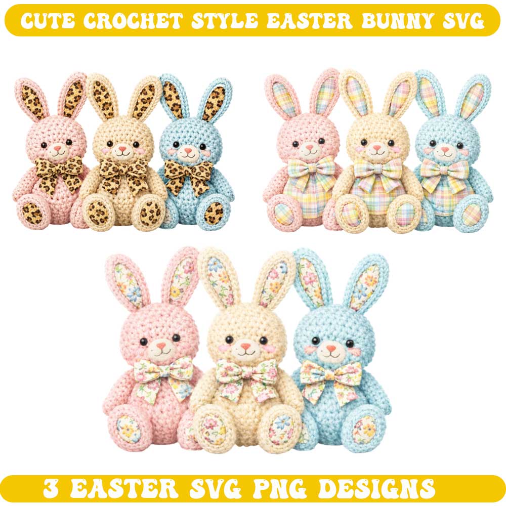 3 Cute Crochet Easter Bunny SVG PNG – Amigurumi Style Designs