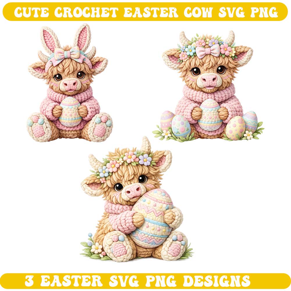 3 Cute Crochet Easter Cow SVG PNG – Highland Cow Amigurumi