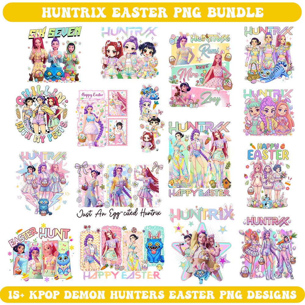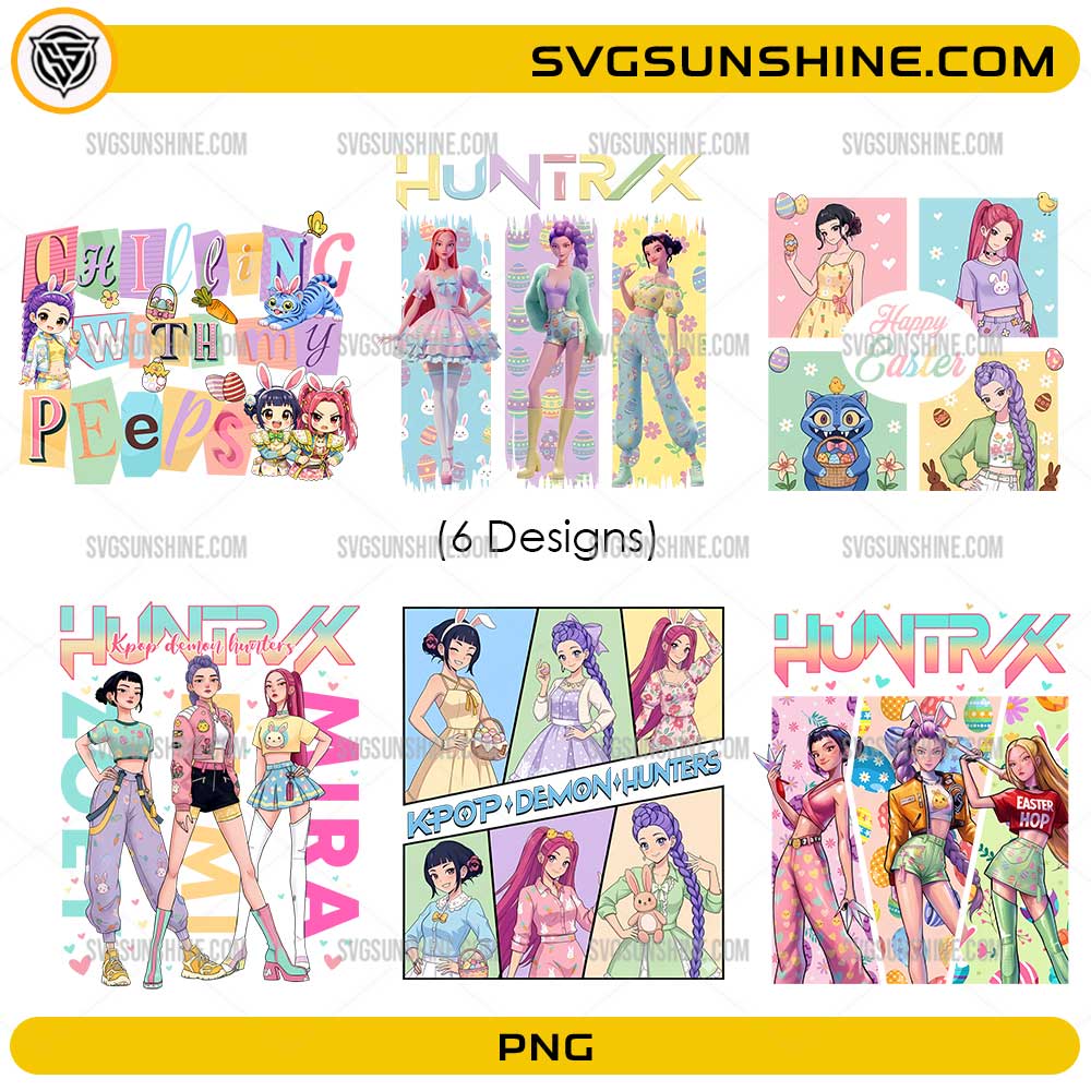 Huntrix Easter PNG Bundle – Kpop Demon Hunters Happy Easter PNG Designs