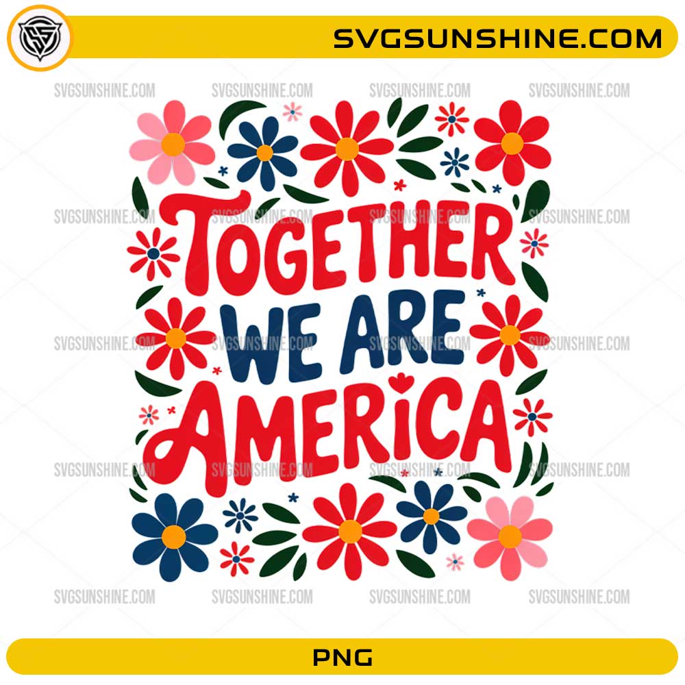 Together We Are America PNG | Patriotic Floral Quote Digital Download