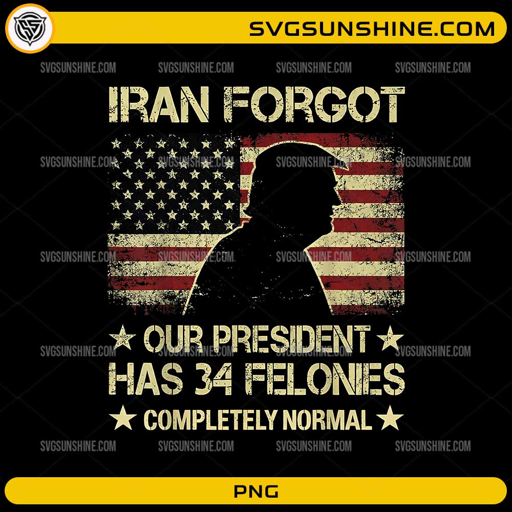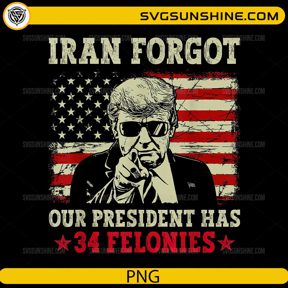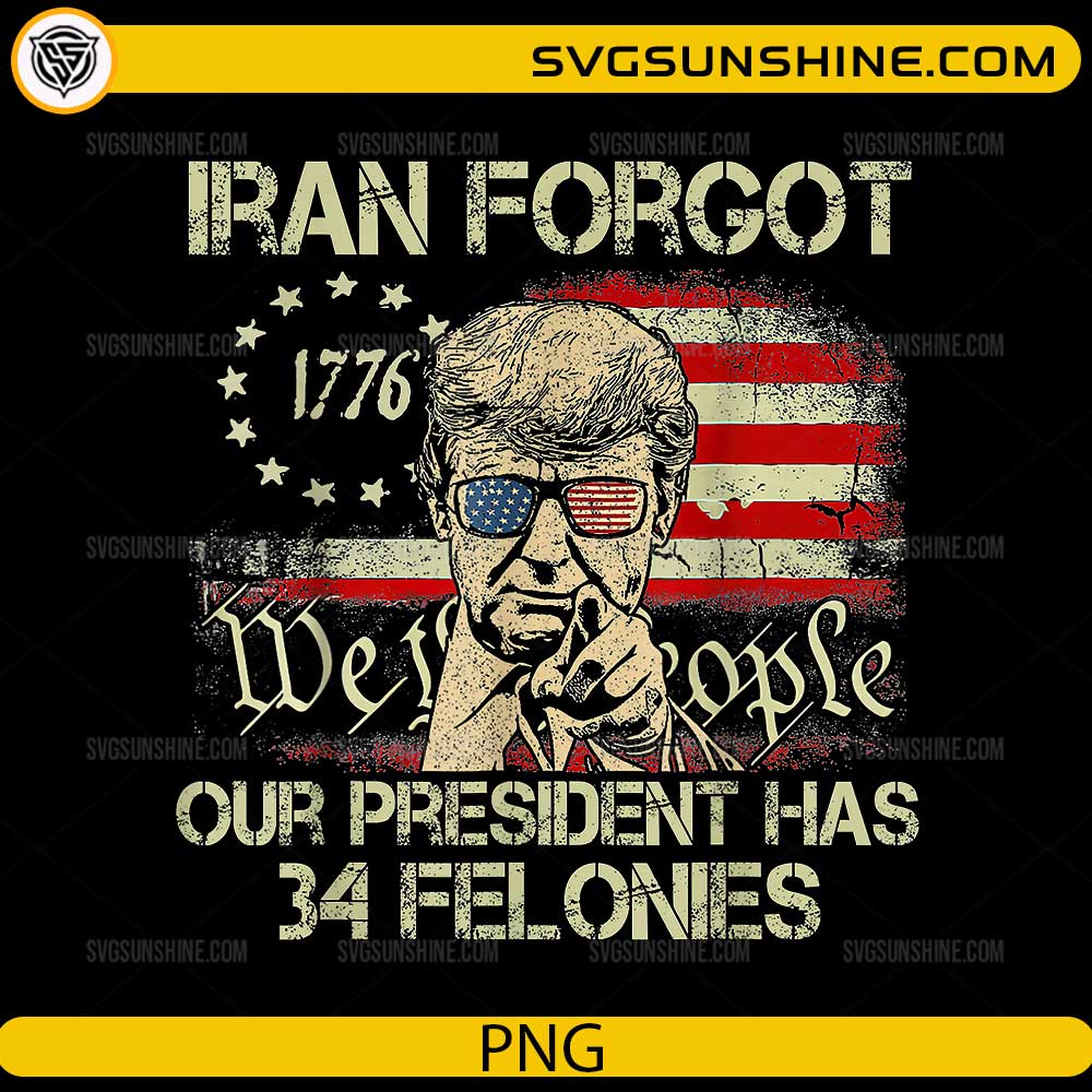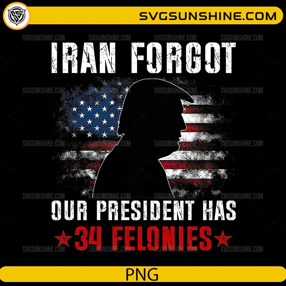 Iran Forgot Our President Has 34 Felonies PNG – Political Humor SVG, Patriotic USA Flag Design, Funny Anti Government PNG