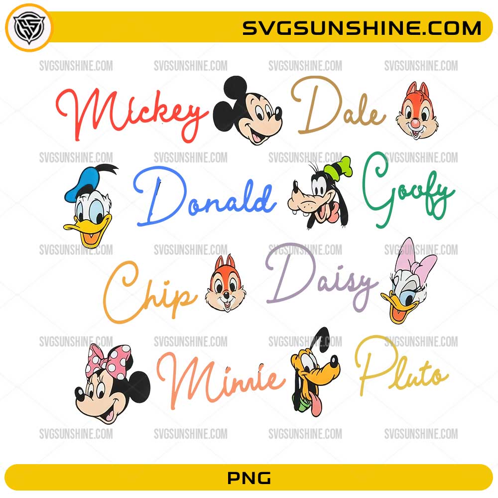 Disney Characters Names PNG – Mickey Donald Goofy Minnie Daisy Typography Design