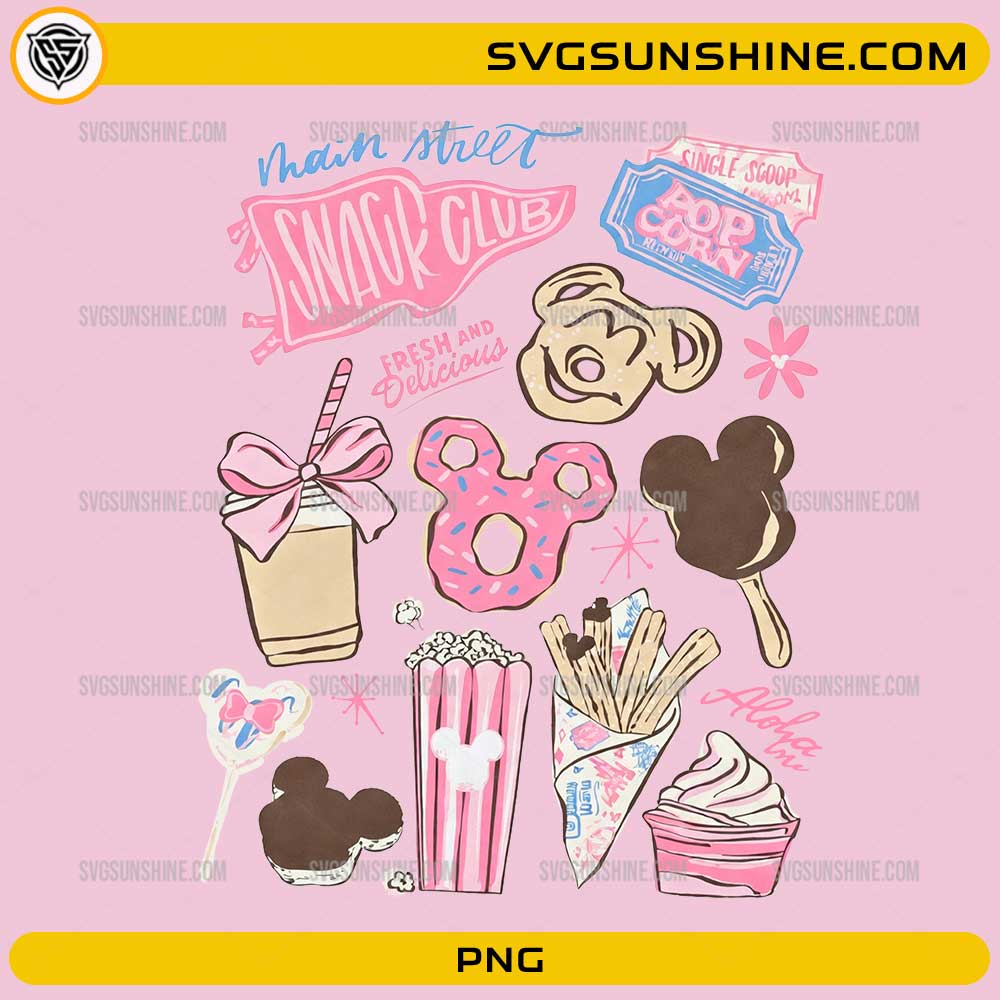Main Street Snack Club PNG – Cute Disney Snacks Donut Popcorn Ice Cream Design