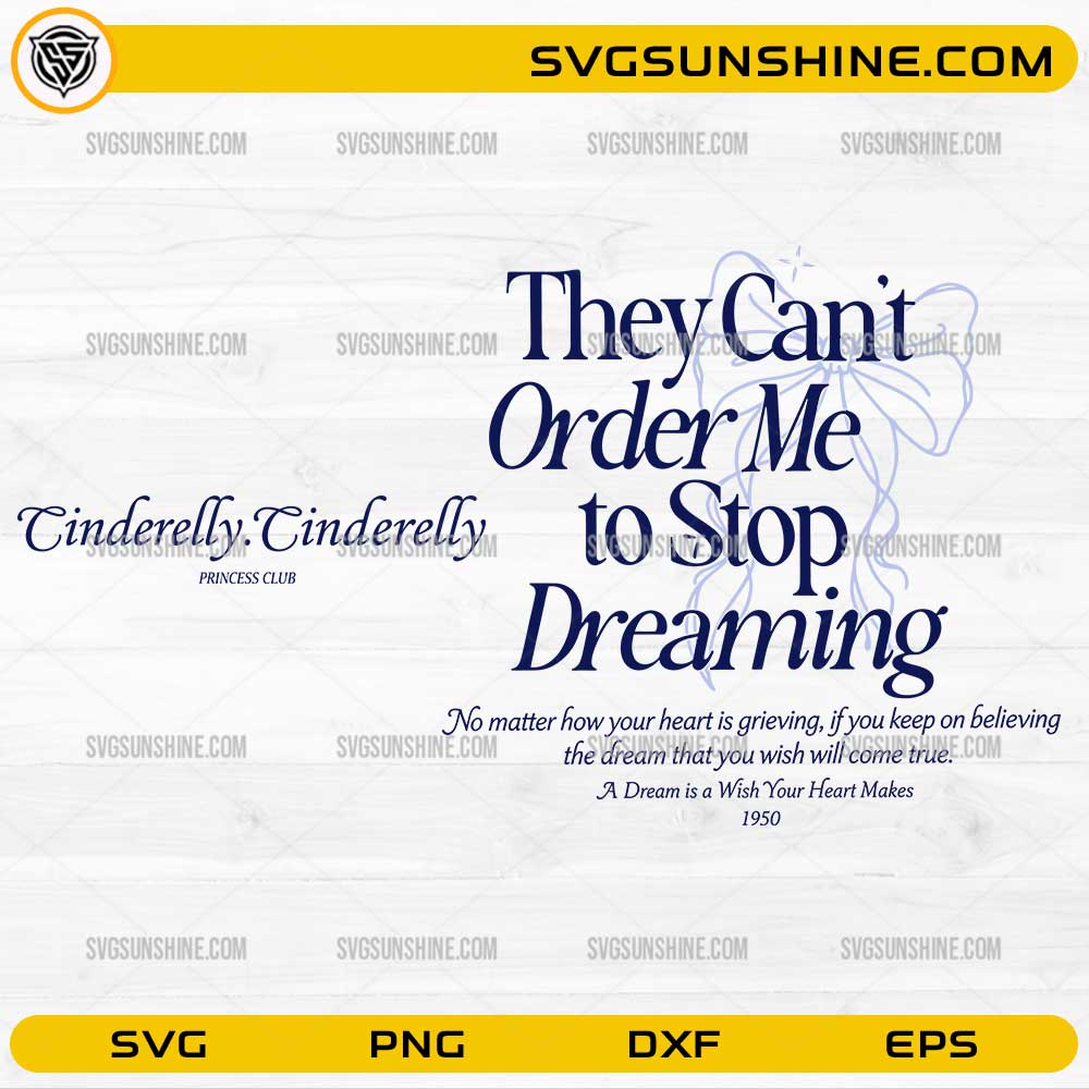 They Can’t Order Me to Stop Dreaming SVG PNG DXF EPS – Inspirational Princess Quote Design