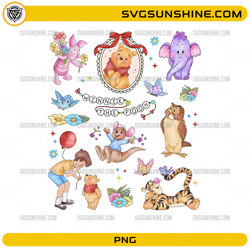 Winnie The Pooh Friends PNG – Cute Pooh Bear and Friends Cartoon Design for Sublimation