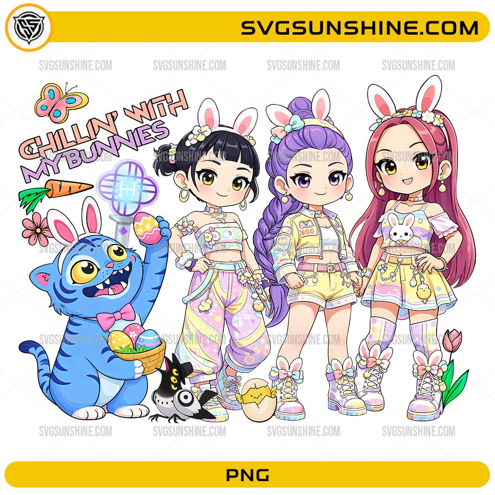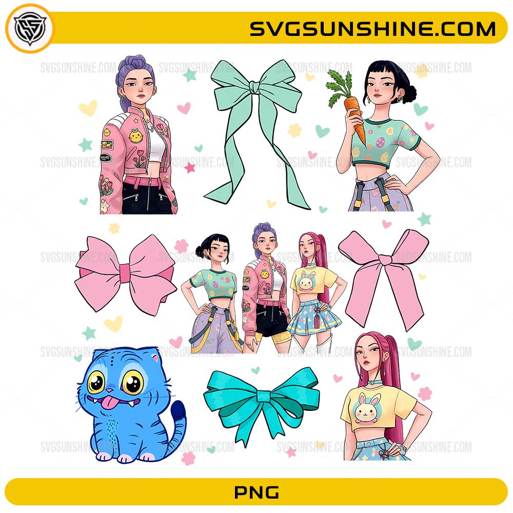 Bunny Squad Huntrix & Derpy Tiger PNG – KPop Demon Hunters Easter Spring Digital Download