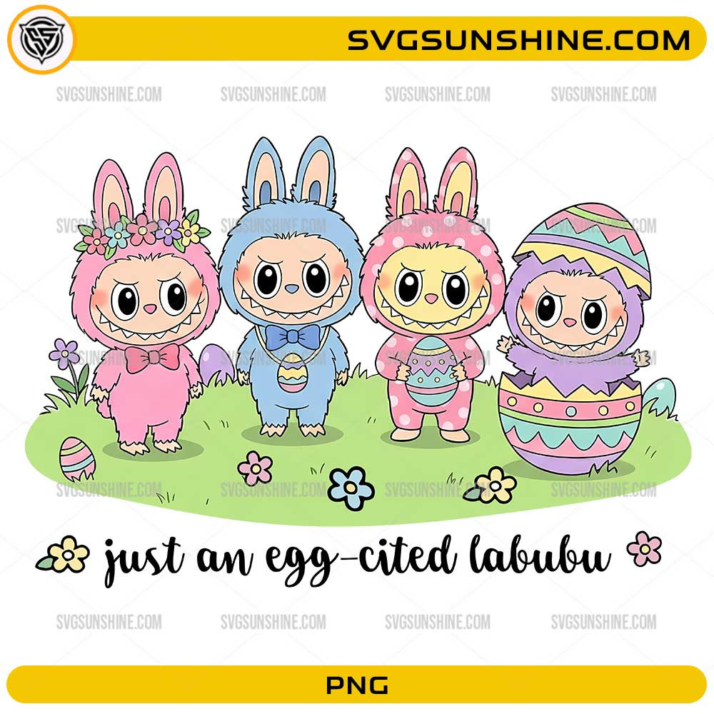 Egg-Cited Labubu Easter PNG – Cute Labubu Bunny Easter PNG Design for Sublimation, Funny Easter Labubu Clipart