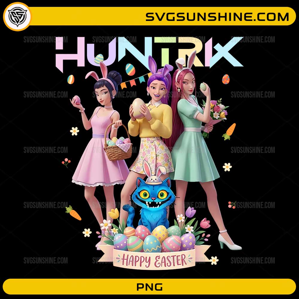 Huntrix Happy Easter PNG – KPop Demon Hunters Easter Bunny Girls & Derpy Tiger Digital Download