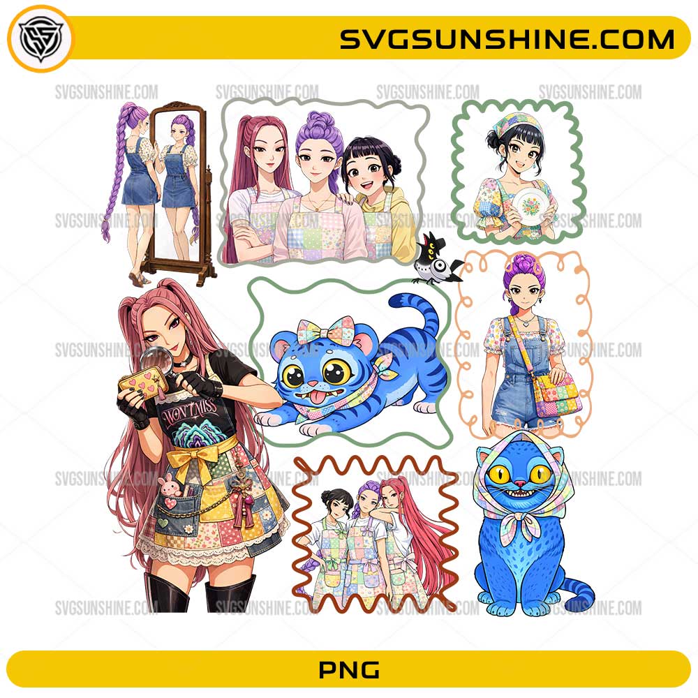 Huntrix Spring Aesthetic PNG – KPop Demon Hunters & Derpy Tiger Pastel Digital Download